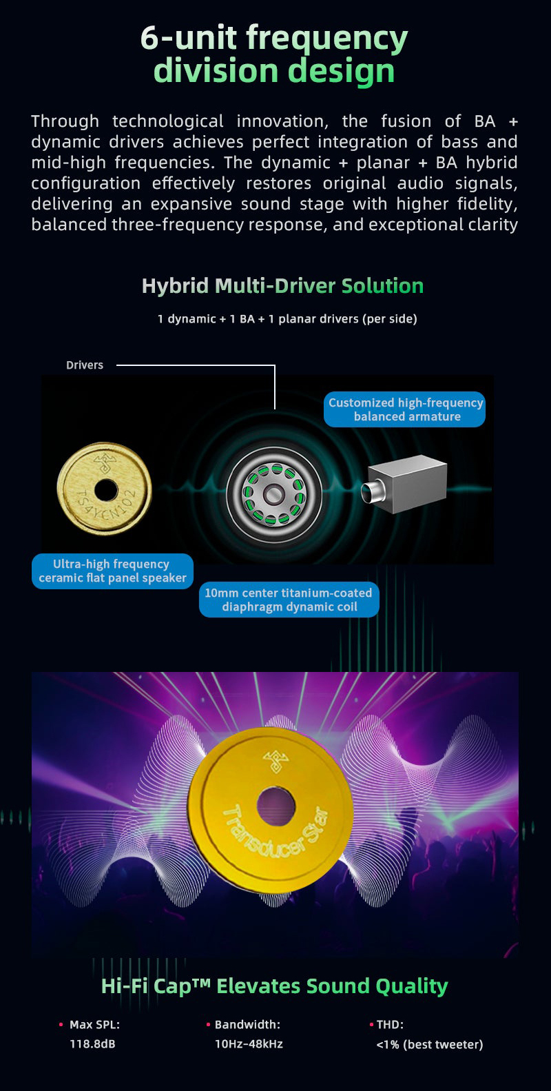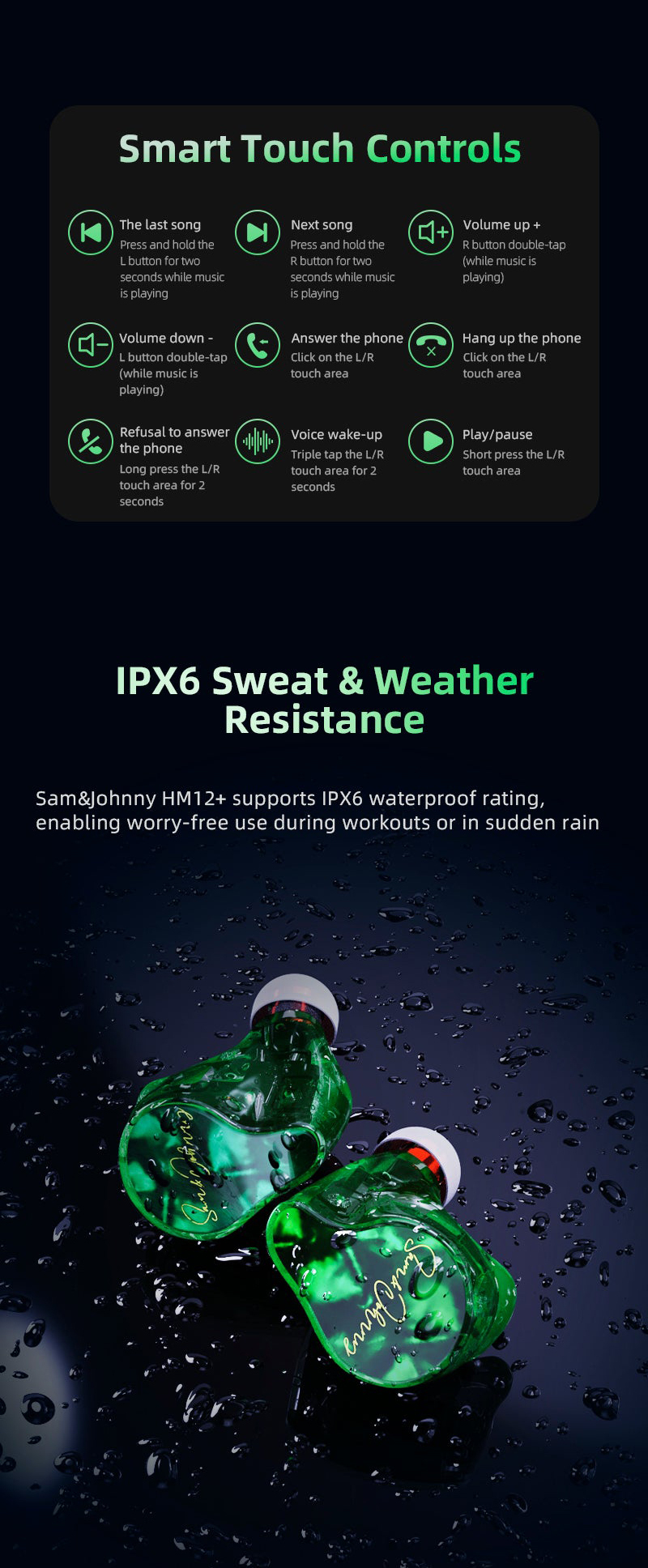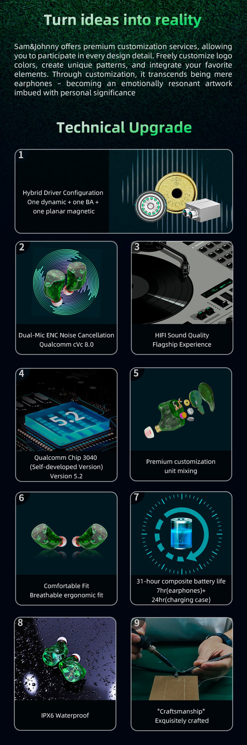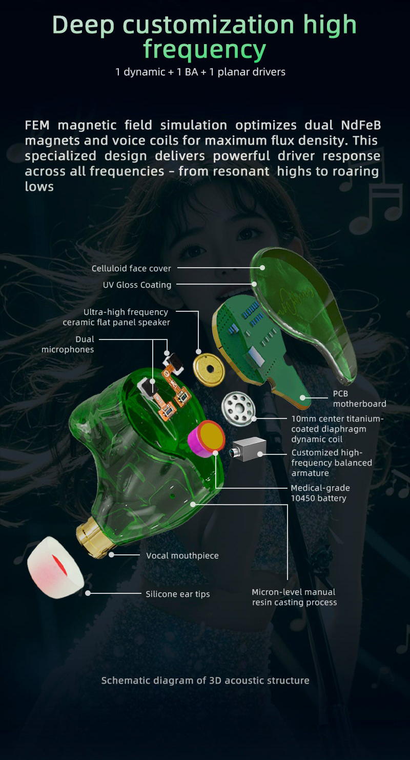Sam&Johnny HM12+ (Dawn) Bluetooth 5.2 HiFi Wireless Earphone (1DD+1BA+1Planar)